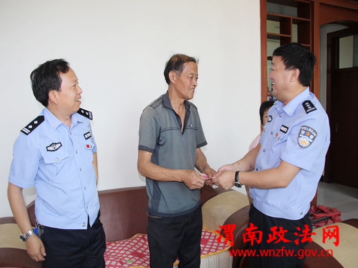 最后还对白水县公安局在职贫困党员张魏军、曹晓虹进行了慰问并分别送去500元的慰问金。此次慰问,张政委、武主任一行与白水县公安局6名特殊情况的党员采取分别慰问、交流座谈、送慰问金的方式进行。通过此次慰问,使党员民警真切感受到了白水公安局党委的关爱之情,切实体会到从优待警的好处。