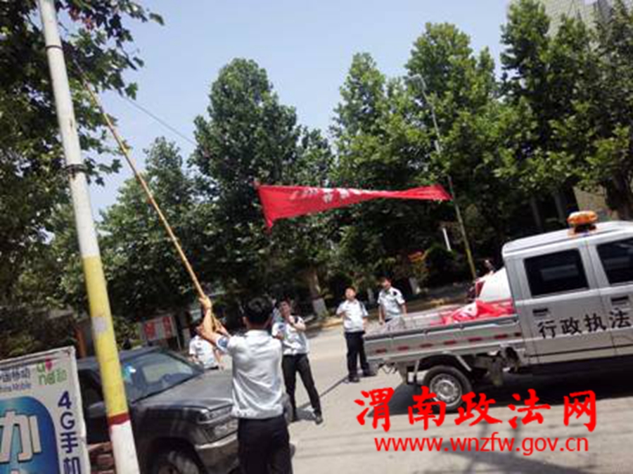 集中整治期间,执法人员逐街逐门店,向城区内所有流动摊贩、门店经营者发放通知书,耐心给群众讲解《陕西省城市市容环境卫生管理条例》的相关规定。对沿街违规悬挂的横幅、宣传标语等全部进行清理。