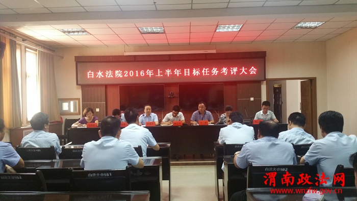 渭南政法网(特约通讯员 昌海燕)7月15日上午,白水县委考评组一行五人在县政府督查室副主任林江平的带领下来到白水法院,对该院2016年度上半年岗位目标任务完成情况进行考评。考评大会由该院党组副书记、副院长赵斌龙主持。