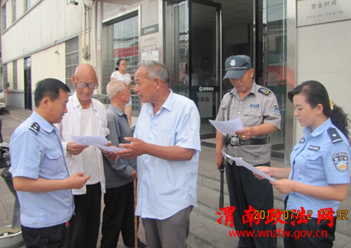渭南政法网(特约通讯员 吝敏)为了有效预防盗抢骗犯罪宣传活动,蒲城高阳派出所结合本辖区实际,明确宣传方式、重点,力争取得最佳的社会效果。借助村级广播和网站、微博、微信等新媒体,该所及时发布预防盗抢骗预警信息,营造浓厚氛围,提高群众自防意识。利用闲暇时间在人流密集区和重点社区等公共场所发放预防盗抢骗违法犯罪宣传单等,积极组织开展街面宣传,受到辖区群众赞誉。