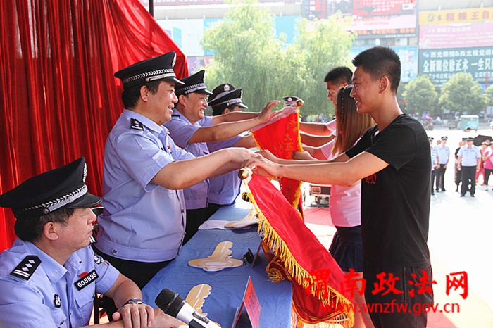 失主们看到被盗的车辆和电脑、电视机又回到自己手里,一个个都非常感动,高兴地给公安机关送上锦旗。