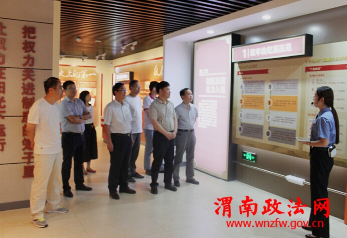 渭南政法网(特约通讯员 李倩 李胜合)为进一步加强党风廉政建设,深入贯彻习近平总书记“预防职务犯罪出生产力”的重要指示,扎实开展反腐倡廉宣传教育工作,筑牢领导干部拒腐防变思想道德防线,提高预防工作水平。7月21日,蒲城县人民检察院党组成员、副检察长索保岗带领院党组成员、政治处主任李胜合、预防职务犯罪科科长段剑平、宣教科科长弥少龙一行四人,前往安康市汉滨区人民检察院参观了安康市检察机关预防职务犯罪警示教育基地,学习并交流了该市廉政文化教育工作及警示教育基地建设工作情况。