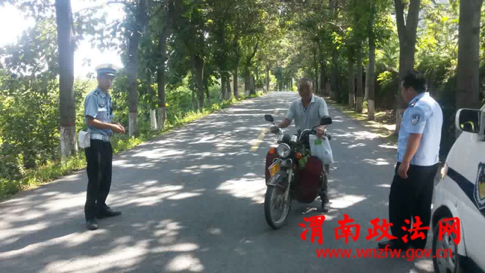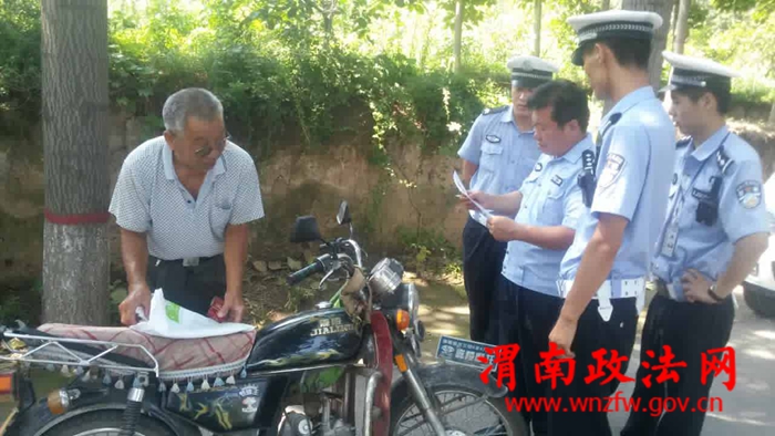 渭南政法网(特约通讯员 李栋)7月26日上午10时28分,潼关矿区交警中队执勤民警正常巡查至桐峪镇东官村路段,有一位骑摩托车的老人,向民警招手求助!