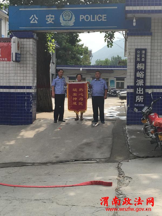 7月25日上午,赵女士来到桐峪派出所将一面写有“破案神速、热心为民”的锦旗送到该所民警屈亚健、刘高手中,表达对及时为其挽回经济损失的感激之情。