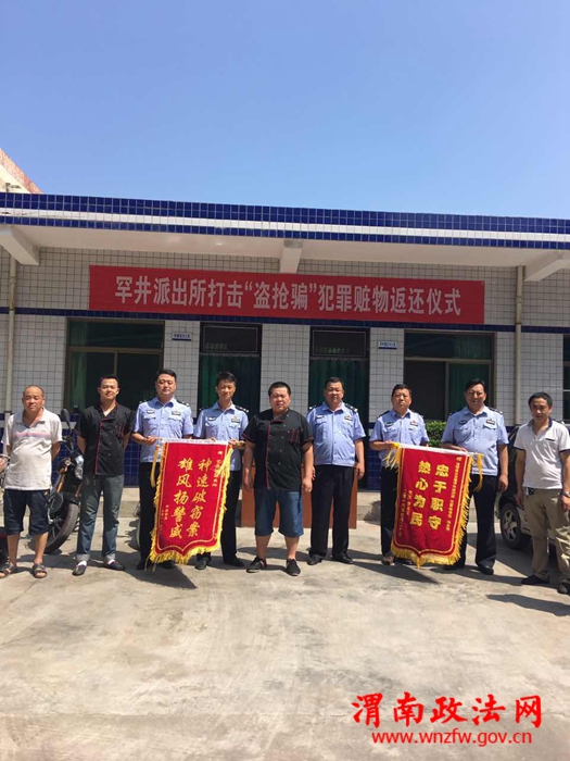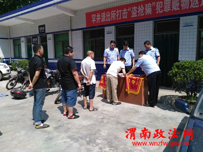 渭南政法网(特约通讯员 吝敏)蒲城县公安局“秦盾行动”开展以来,蒲城罕井派出所严打“盗抢骗”犯罪,成功破获系列盗窃案,净化了辖区社会治安环境,2016年7月21日上午10时,蒲城县公安局罕井派出所举行了“盗抢骗”犯罪赃物返还仪式。