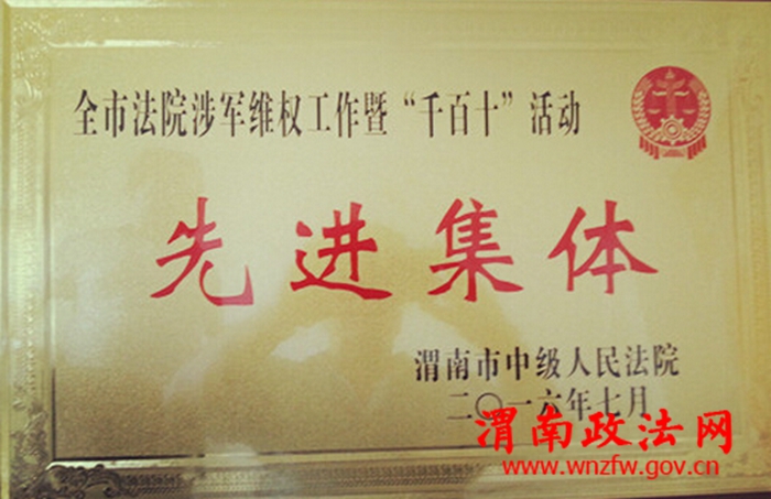 富平法院民事审判一庭副庭长戴乐丫具体负责涉军案件合议庭的工作,以其突出的工作成绩,被评为全市法院涉军维权案件工作先进个人。