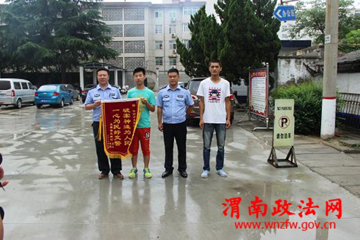 渭南政法网(华阴交警讯)2016年7月27日早,华阴交警大队门口鞭炮轰鸣,为表达对中队民警感激之情,受害人家属将写有“破案神速为人民 一心为民好交警”的锦旗亲手送到事故中队民警孟鹏和民警张立手中,深切表达了对民警的谢意。
