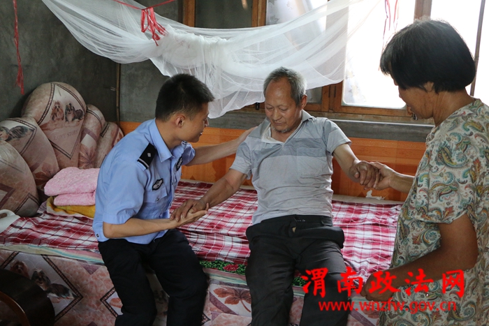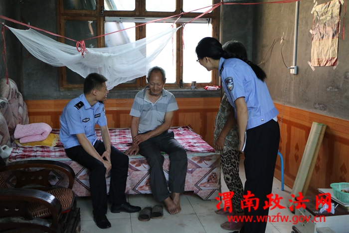 出入境帮扶对象为城关镇彭村蒋世华家,蒋世华老人由于脑梗常年卧床,生活不能自理,家里家外全靠老伴一人应付,儿子常年在外打工,30多岁还没有结婚,一家人十分着急,之前,大队多次与村委会干部就他们家面临实际困难及实现脱贫措施沟通,并多次送来米、面、油等生活用品,经过努力,民警发现老人家里申请的低保已经落实,按照评定级别,老人家每个月会有500多元的低保收入,为老人减轻一大部分负担,老人非常欣慰,气色也比之前好了很多,民警鼓励老人坚持做康复训练,搀扶老人下地走动锻炼,与老人拉家常,鼓励老人用积极心态面对生活早日康复。