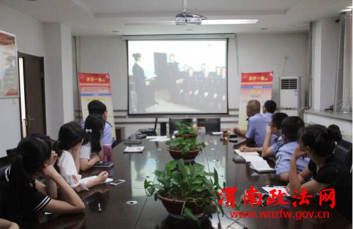 参训民警及辅警观看《公安民警出庭作证》教学片