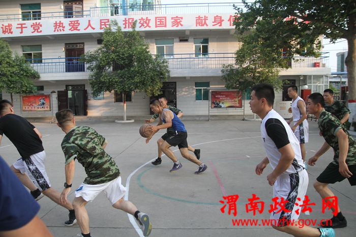 渭南政法网(特约通讯员 郎军杰)为丰富民警的业余文化生活,进一步活跃警营文化氛围,8月3日,富平县公安局巡特警组织队员与兄弟武警富平中队开展篮球友谊赛,双方参赛队员本着“友谊第一、比赛第二”原则,充分发扬顽强拼搏精神,在比赛中加深了交流、舒缓了压力、增强了体质,展现了良好的精神风貌。
