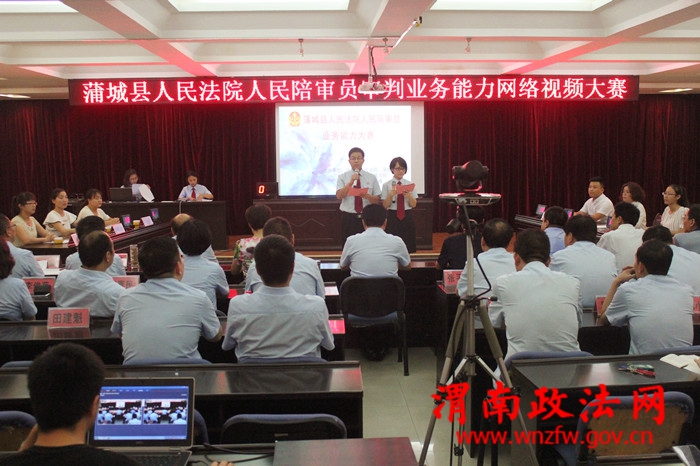 渭南政法网(特约记者 惠国强 李园)为进一步提升人民陪审员业务能力,调动人民陪审员参审积极性,向社会展示司法民主的成果。8月3日下午,由蒲城县人民法院、蒲城县司法局联合主办的蒲城县人民法院人民陪审员审判业务能力网络视频大赛在七楼大法庭拉开帷幕。比赛全程通过新浪视频、陕西高院、蒲城法院官方微博同步直播。