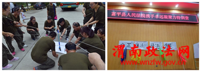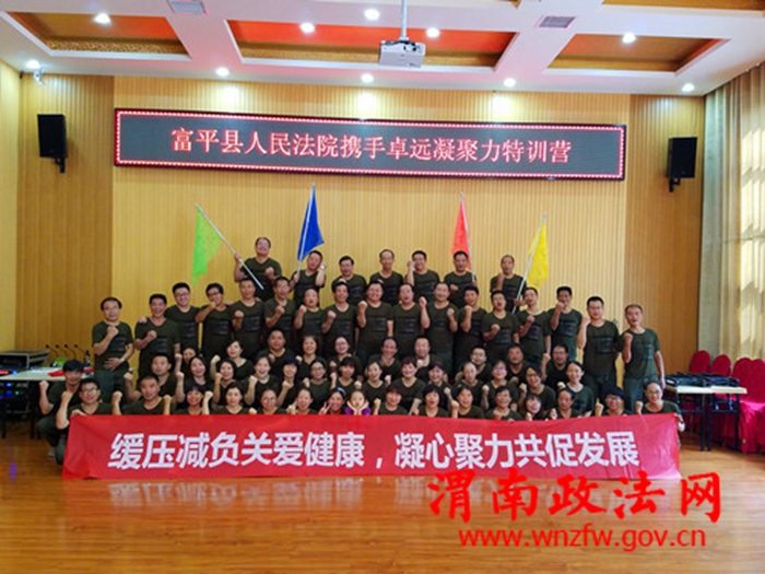 渭南政法网(特约通讯员 李冬菊 刘欢欢)“好!很好!非常好!富平法院的明天会更好!”铿锵有力的声音回响在训练场上。这是富平法院利用周末时间,正在组织全体法官干警参加的一场主题为“缓压减负关爱健康、凝心聚力共促发展”的野外拓展训练。