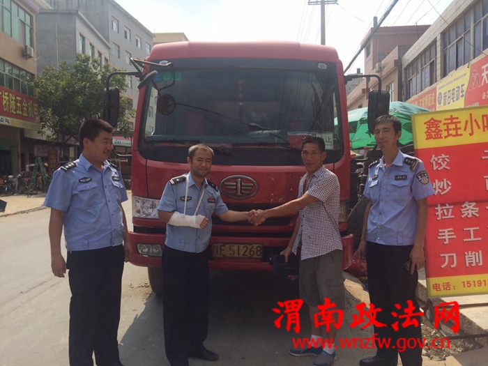 8月20日早7时,历经2小时的车程到达了黄标车的存放地,民警们虽然很累,看到黄标车的时候,纷纷露出了喜悦的笑容:为了减少车主损失和节约时间,民警们不畏惧炎热,主动帮助车主将车上的物品卸下,汗水浸湿了民警的衣服。车主感动的说:以后有时间,一定要再来渭南,临渭保丰交警真正是一心一意为人民服务,我要给你们点赞……。