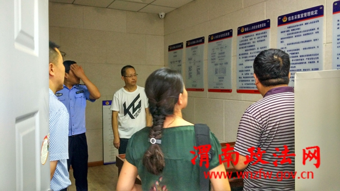 蒲城县迎宾路派出所一行查看了经开分局辛市派出所办案区,听取了经开分局执法办案和案件管理室等执法规范化建设具体工作做法的介绍。双方围绕执法监督系统和基层执法办案使用、受立案改革等工作进行深入交流。
