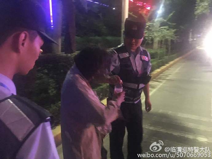 8月23日晚9点10分,渭南市临渭巡特警大队民警在巡逻至市委门口时发现一名女子躺在地上,经民警了解,该女子王某,身无分文,因几天没吃饭晕倒在地,民警给王某买了吃喝食品,待精神有所好转将王某送往救助。在救助站得知王某家住石油公司家属院,并将其送回家中。