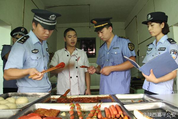 【富平民警检查校园和周边食品安全】8月24日,富平县公安局美原派出所联合驻地药监部门对美原中学周边饮食小摊点进行检查,并向从业人员进行法律知识宣传。进一步消除各类食品隐患,确保校园周边食品安全,为广大师生营造安全、健康的校园环境。