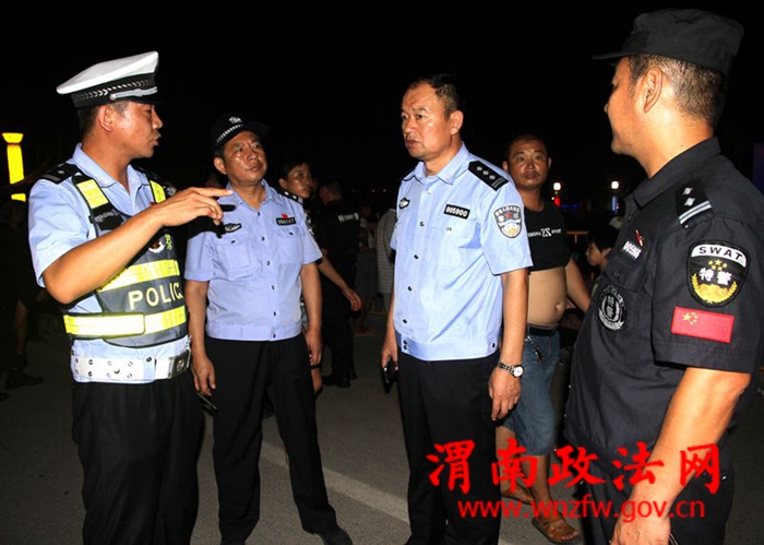 副局长马军社和治安大队长田学定、巡特警大队长李长保、交管大队副大队长柴红军在现场部署安全保卫
