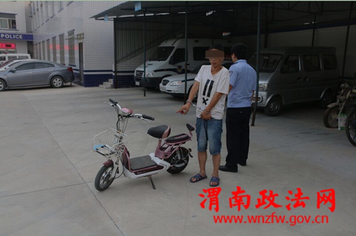 2016年8月24日,崇业路派出所民警在日常走访巡查过程中,发现有一群众电动车坏在了路边,好似正在自己检查问题所在,民警便上前询问,看是否需要帮助,谁知这位群众一再谢绝民警的帮忙并急于离开,民警感觉此人好像有问题,便对其进行进一步盘问,盘问中此人神情慌张,一再躲避民警的问题,在问到电动车从什么地方、什么时间购买时,此人撒腿就跑,民警迅速上前将其控制,带回所里进行询问。