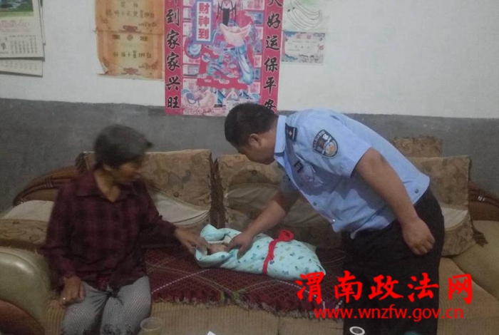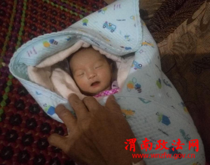 渭南政法网(特约通讯员 艾静)2016年8月28日凌晨,华阴市公安局北社派出所接岳庙办东栅村村民翟某报警,在其家门口发现一名弃婴,要求民警前去处理。接报警后,值班民警杨伟、孙万军第一时间赶到现场,发现不少群众围观在一辆红色的收割机旁边,在收割机旁水泥地上,有一个用包裹包着的婴儿,一直在啼哭。民警上前抱起婴儿到翟某的家中,仔细查看为一女婴,出生不过满月,身体完好,包裹内没有留下任何有关女婴身份的线索。