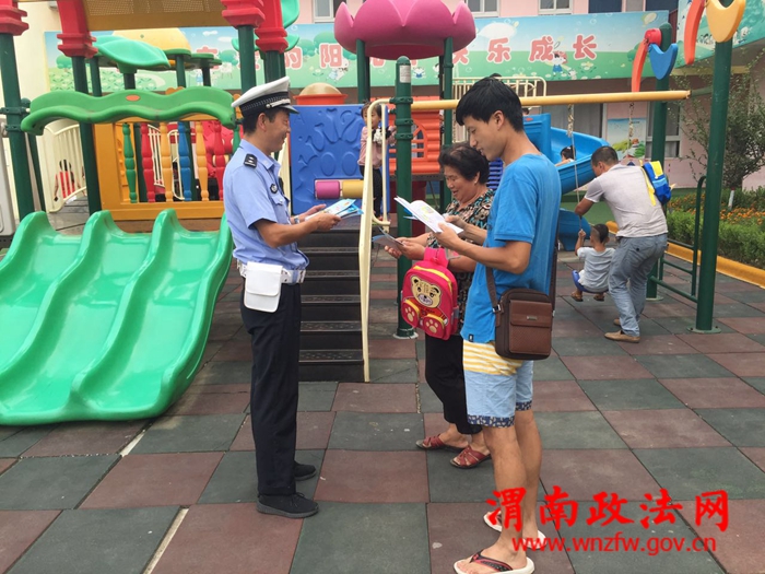 学校有家长来接学生,民警立即上前发放宣传资料告知广大家长骑乘摩托车要注意安全,安全第一。矿区中队民警从各方面来管控,降低辖区交通事故的发生。