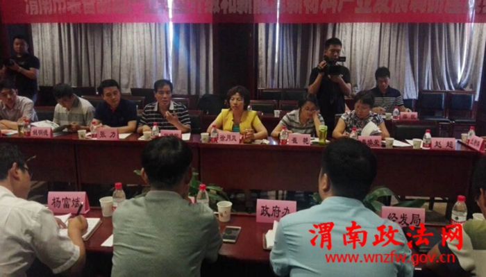 渭南市政协科教文体委员主任屈建民主持会议,潼关县政府、县政协,经发、黄金、工业、工业新区及园区企业等部门单位主要领导参加。副县长杨富斌代表县政府汇报潼关县装备制造和新能源新材料产业发展工作;二是工业新区、黄金局及园区企业等单位主要负责人,汇报单位工作情况;渭南市政协委员发言,渭南市政协副主席徐月凤根据渭南市装备制造和新能源新材料产业发展的重要意义、现状态势、发展战略、整体规划及社会效应等五方面作重要讲话。