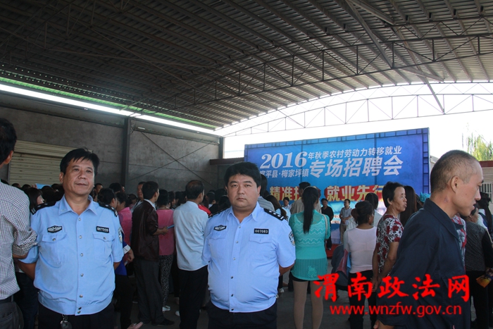 渭南政法网(特约通讯员 苏玉叶)富平县梅家坪派出所圆满完成了富平县2016年农村劳动力转移就业专场招聘会安全保卫工作,受到了各级领导、招聘企业特约通讯员 苏玉叶和广大求职者的一致好评。