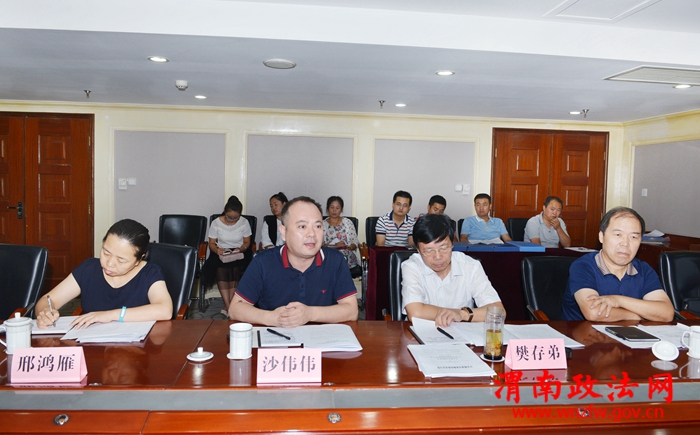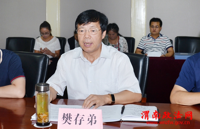 渭南市委常委、政法委书记、统战部长樊存弟主持汇报会议。记者 许艾学 摄