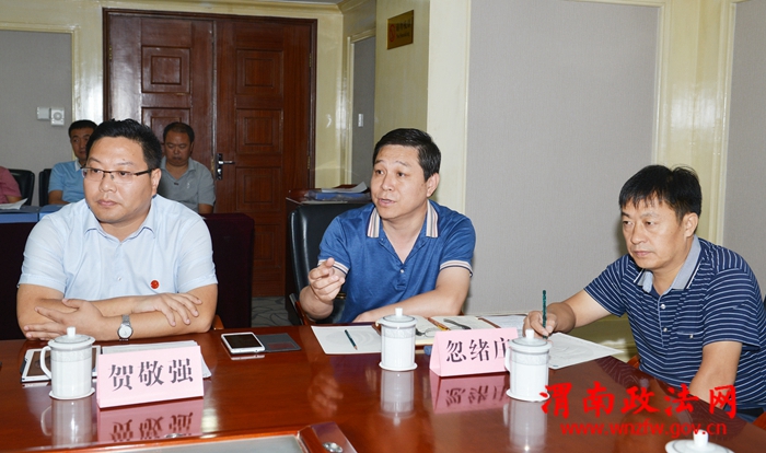 9月8日上午,由省民政厅副巡视员朱圣根,省委办公厅综合二处主任科员郭丽斌,省民政厅基层政权和社区建设处主任科员冉东之组成的省委民主法制领域改革专项督查组来渭督查指导工作。记者 许艾学 摄
