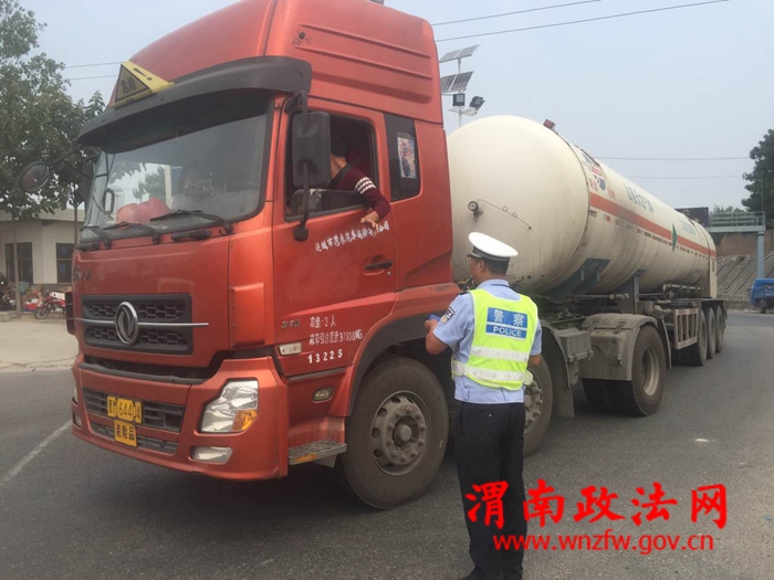 渭南政法网(特约通讯员 韩立朋 汤朗武)潼关秦东交警中队加强“两客一危”重点车辆管理,严防群死群伤恶性事故的发生,结合辖区的实际情况,科学部署警力,采取有力的监管措施消除重点车辆安全隐患,预防重特大道路交通事故发生。