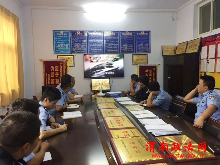 渭南政法网(特约通讯员 张晨 汤朗武)9月19日12时,潼关矿区交警中队指导员陈引龙组织全警观看公安部《公安机关规范执勤执法视频演示片》。