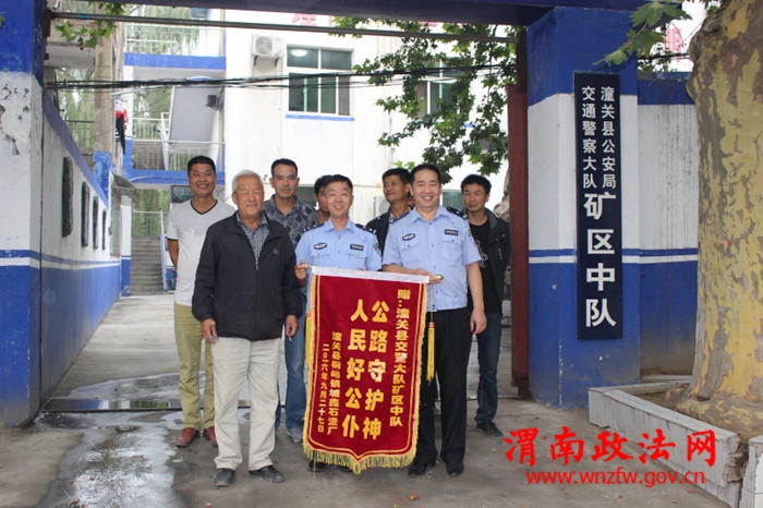李家村乡镇企业管理人一行送来一面“公路守护神、人民好公仆”锦旗,感谢矿区中队民警长期以来确保路段交通道路安全畅通,交通管理有序。