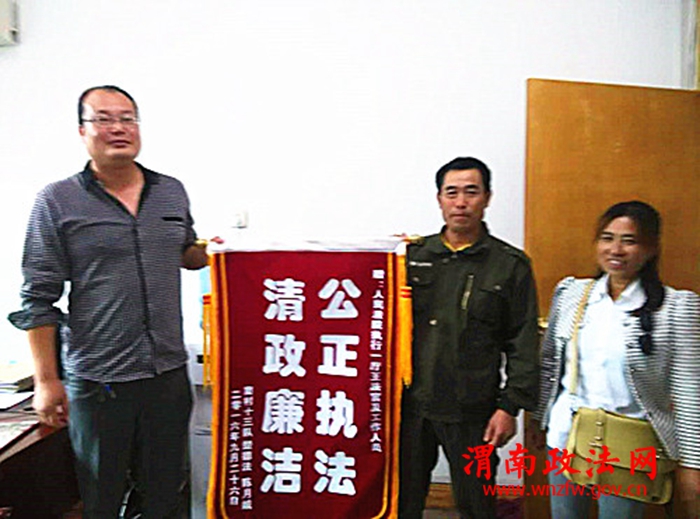 渭南政法网(特约通讯员 冯鹏飞)近日,楚某与陈某夫妻二人来到富平县法院执行一庭,将一面印有“公正廉洁 清正廉洁”的锦旗送到执行一庭王新朝法官手中,感谢法院悉心调解,化解纠纷。