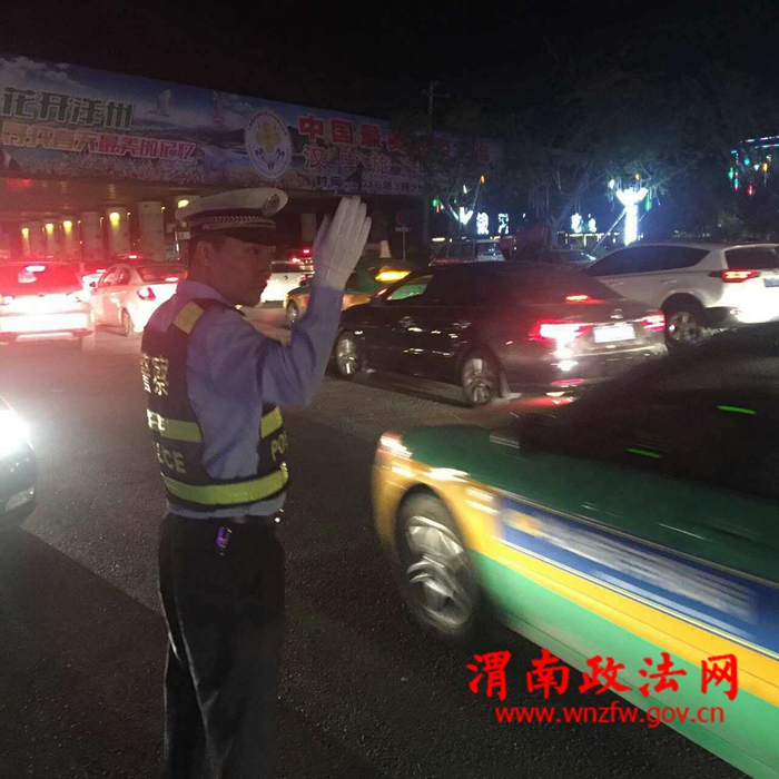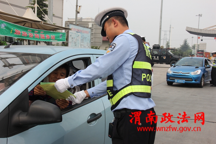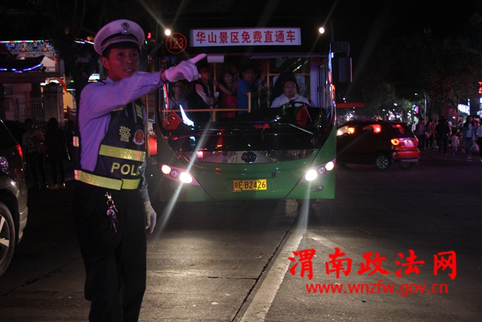 渭南政法网(特约通讯员 高蕾“十一”黄金周期间,华阴交警大队全体民警面对着巨大的客流、车流高峰,每天7点至23点坚守工作岗位,不管是晴天一身灰,还是雨天一身泥,全体民警始终保持良好的精神面貌,笑迎八方来客,以务实的工作作风展示了华阴交警良好形象,圆满完成了黄金周道路安保工作。