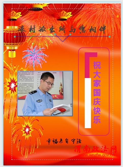 渭南政法网(特约通讯员 苏亮)2016年国庆节一大早,淡村派出所利用新媒体,通过辖区微信安全群、QQ群向辖区居民送去祝福,强调节日安全。截止10月1日下午18点,淡村派出所制作的《欢度国庆,与您相伴》小视频,已被转发3900余次。通过新媒体,淡村派出所将民警和公安机关的祝福送进千家万户,进一步拉近了警民关系。