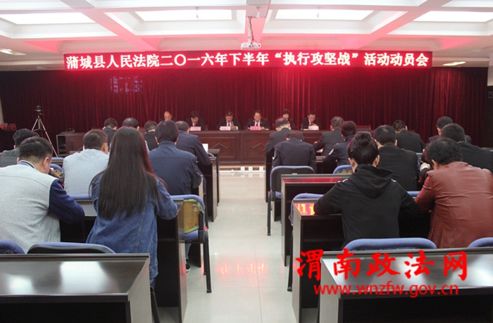 渭南政法网(特约通讯员 党君宁 李园)执行难是长期制约人民法院工作发展的老大难问题,损害胜诉当事人合法权益,严重影响司法公信力。为认真落实省高院在全省开展“执行攻坚战”活动的安排部署,实现“用两到三年时间基本解决执行难问题”的宏伟目标,蒲城法院针对今年以来执行工作的严峻形势,决定在全院开展2016年下半年“执行攻坚战”活动。10月9日的动员会标志着该院2016年下半年“执行攻坚战”的“冲锋号”正式吹响。