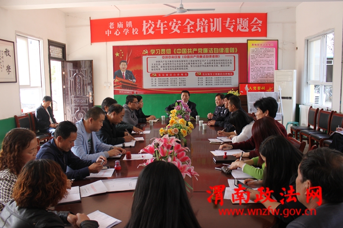 2016年10月18日上午12点许,在富平老庙镇中心学校,该中心学校负责人宋辉召集辖区幼儿园负责人、校车司机、随车老师等30余人,召开校车安全培训专题会。富平县公安局交警大队法宣科、交警美原中队以及县教育局安监股有关负责人到会,并结合工作实际,就校车安全问题进行培训教育。辖区幼儿园、校车司机及随车接送人员代表作了工作汇报或表态发言。