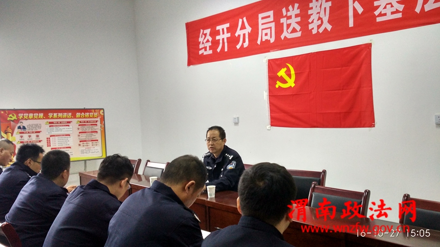 渭南政法网(特约通讯员 刘孟德)为提升基层民警的实战水平,10月27日下午,渭南市公安局经开分局法制大队长刘孟德同志亲临辖区龙背派出所,送教下基层、送法到一线,为该所一线执法办案民警讲解新颁布的公安机关执法细则。