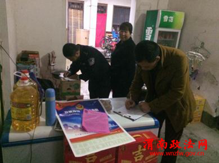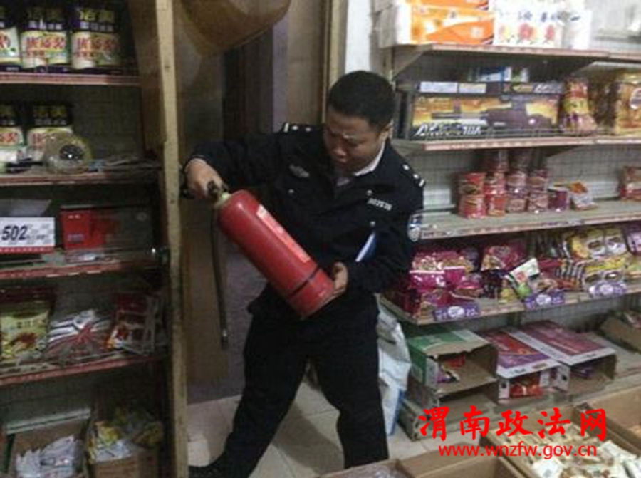 渭南政法网(特约通讯员 孙万军 刘快快)2016年10月26日、27日,北社派出所所长史江峰带领民警张红一、孙万军等人对北社辖区涉及烟火炮竹销售的所有商店、小卖部等场所进行了全面细致的检查。重点做好烟火炮竹的销售、存储,消防器材的配备使用等检查工作。同时,向店主及周围群众宣传平安建设、征求意见和建议。经过两天的工作,北社派出所共检查场所十五家、下发整改通知五份、排除安全隐患三处。