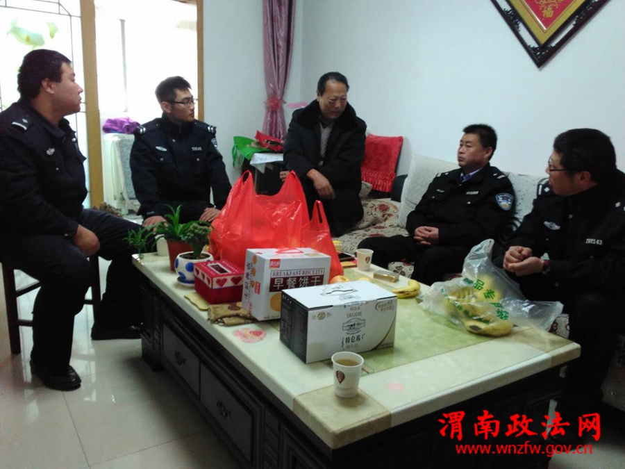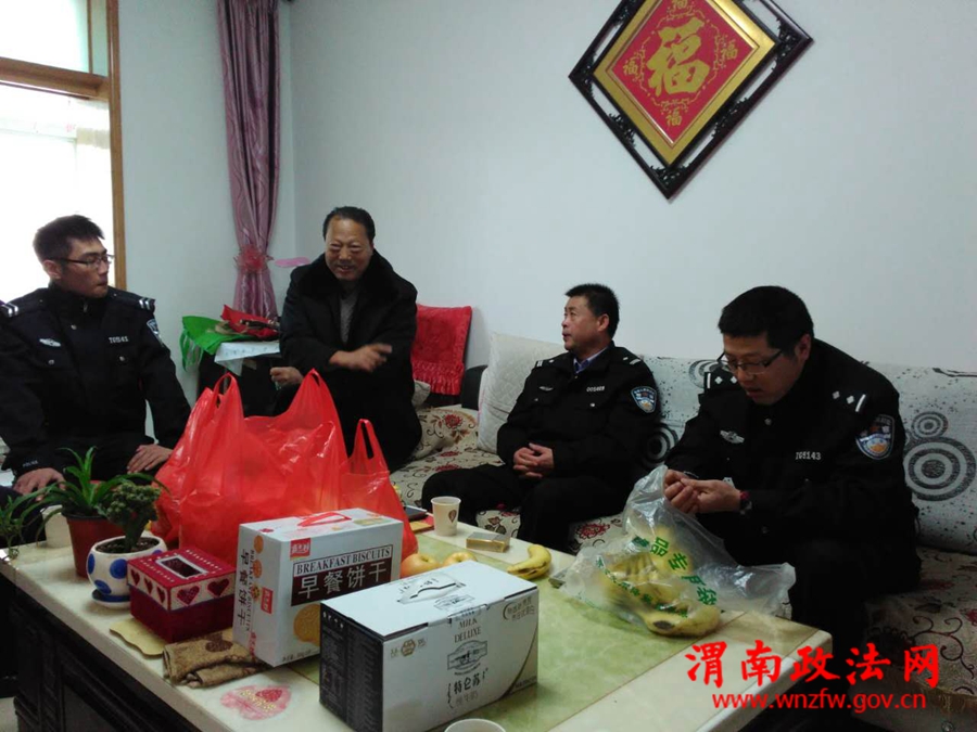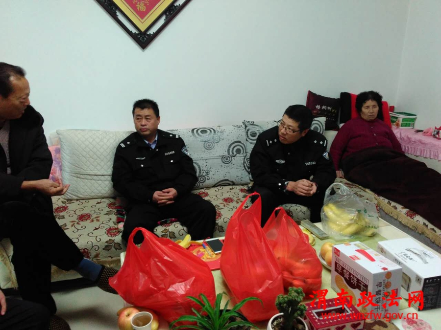 渭南政法网(特约通讯员 夏阳)11月3日中午,潼关县交警潼洛中队中队长秦荣国一行来到优秀民警石军旗家里,看望慰问近日因摔伤住院民警石军旗母亲,并送上慰问品。进一步落实公安部“1+9”工作从优待警举措,切实关心关爱民警及家属,增进民警家属对公安交通管理工作的理解支持。