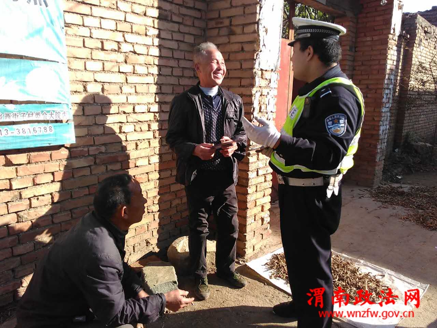 渭南政法网(特约通讯员 夏阳)2016年11月4日,潼关潼洛交警中队扎实开展平安创建工作,进村入户开展平安创建活动提高群众知晓率,创造更为和谐安定社会发展环境。