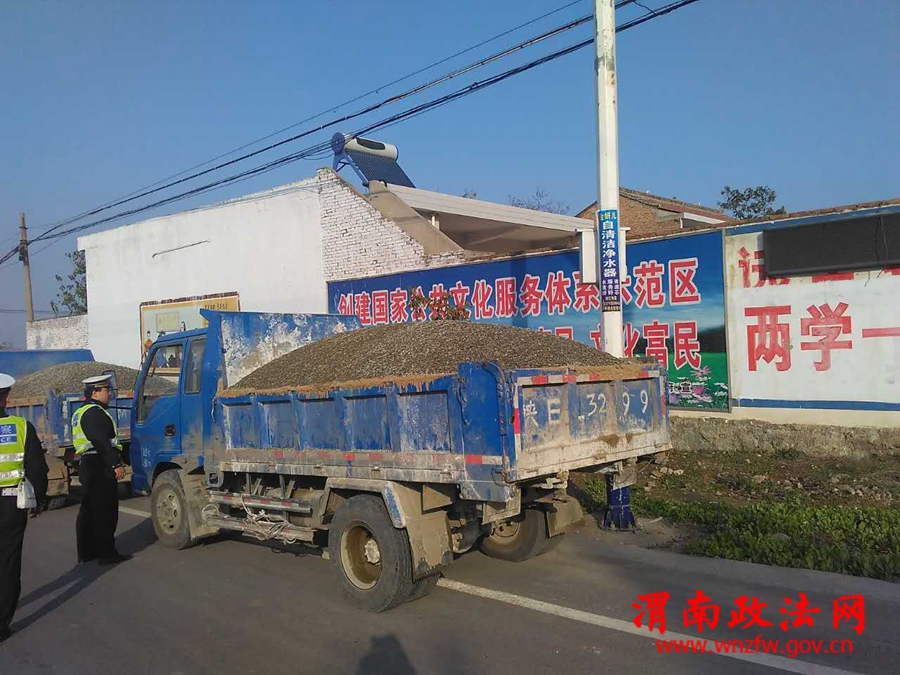 渭南政法网(特约通讯员 夏阳 汤朗武)11月4日,潼关县潼洛交警中队1356班组民警调整勤务,有效防止渣土车在运载过程中抛洒滴漏等行为发生,错时延时加大对运载石子车、拉沙子车,拉土车抛洒违法行为整治力度,采取处罚、返场卸货、并将道路上遗洒物进行清理打扫,切实做到严管严控,为创建文明城市及平安创建工作奠定基础。
