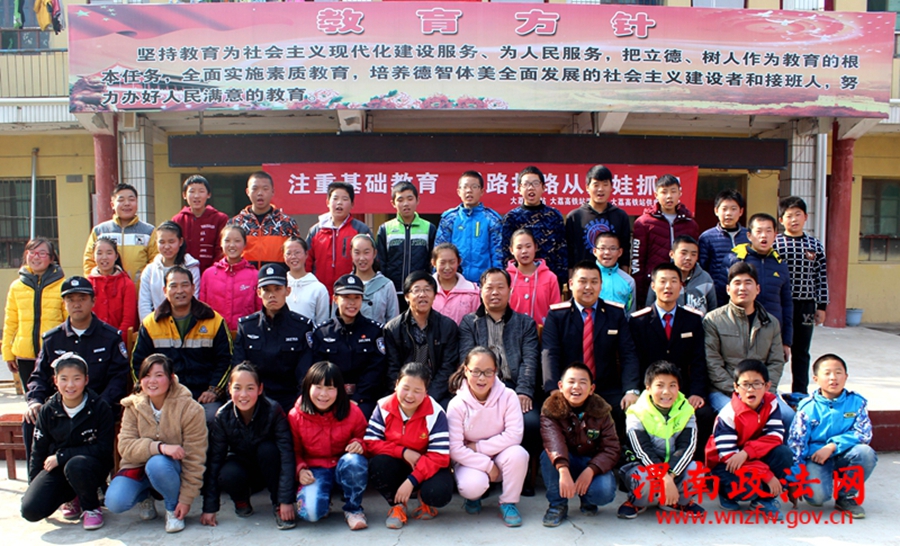 随着西安至太原段高铁正式开通运营,大荔迈入“高铁时代”,两年来,大荔站累计发送旅客220余万人次。为了确保高铁沿线运行安全,11月3日一大早,西安铁路公安处大荔站派出所民警和高铁站工作人员带上图文展板和宣传资料,走进许庄镇户家中心学校,开展以“注重基础教育 铁路安全从娃娃抓起”为主题的安全教育活动,宣讲安全知识第一课。活动中,民警采取案例讲解、有奖问答通俗易懂的互动方式,讲解安全常识和高铁法规。生动活泼、内容丰富的宣讲活动受到了广大师生的热烈欢迎。通过学习,孩子们决心小手拉大手,和父母一起争做铁路安全宣传员,共筑平安高铁。