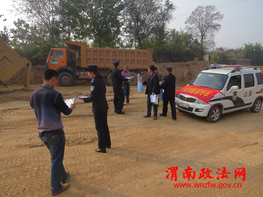 渭南政法网(韩城公安讯)为进一步推进韩城市平安建设工作,调动广大群众参与平安建设的积极性、主动性,积极做好群防群治平安建设工作。从2016年10月4日开始,韩城市公安局龙亭派出所积极组织民警、协勤人员深入辖区施工现场、商户、乡村等重点单位和人流聚集地方开展平安建设宣传活动。