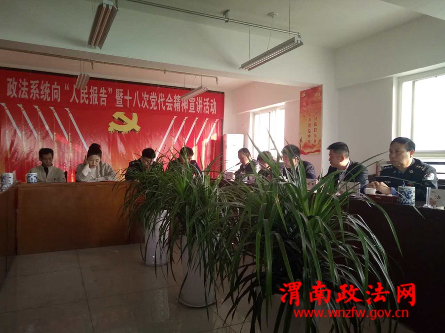 渭南政法网(特约通讯员 岑长明)11月8日,韩城市政法系统“向人民报告”活动走进桑树坪镇,人民法院、检察院、公安局、司法局的主要领导向镇区内48名“三代表一委员”报告工作,韩城市委政法委主要领导宣讲韩城市第十八次党代会精神,现场发放“两率一度”调查问卷,倾听民众对政法工作的意见和建议,最大限度的赢取广大人民群众对政法工作的理解和支持。