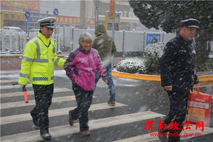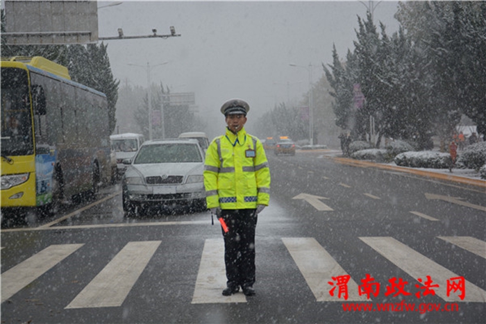 渭南政法网(特约通讯员 李诗龙)11月22日渭南迎来入冬以来第一场雪,主城区降雪达20厘米左右。这场纷纷扬扬的大雪也给高新区辖区道路交通带来了严峻考验,高新大队负责人王晓文立即启动恶劣天气应急预案,调动全体民警在辖区各路口、车流量大的路段上岗执勤,防止由于路面湿滑,车辆打滑、抛锚、发生交通事故导致交通拥堵。