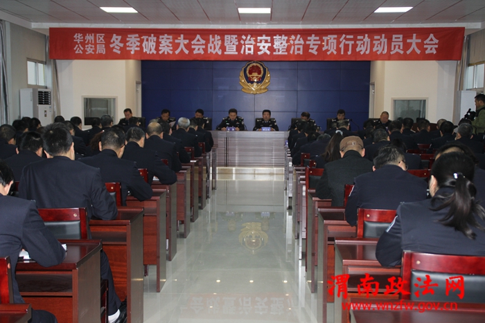 渭南政法网 (特约通讯员 李毅) 为了严厉打击危害社会公共安全的各种违法犯罪活动,维护全区治安大局持续稳定,提升人民群众的安全感和对公安队伍的满意度,11月22日,华州区公安局召开了冬季破案大会战暨治安整治动员大会。该局党委书记、局长师正利作了动员讲话,局领导班子全体成员,全局中层干部及机关全体民警参加了会议。会议由党委副书记、政委秦卫宏主持。