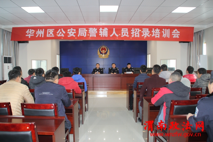 渭南政法网(特约通讯员 李毅)2016年11月24日,渭南市华州区公安局举行警辅人员招录培训会,华州区公安局党委副书记、政委秦卫宏作了欢迎讲话,政工、巡特警相关人员及新招录的17名警务辅助人员参加了会议。会议由政工监督室主任李晓宏主持。
