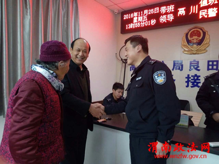 11月25日中午,良田派出所民警赵宏辉像往常一样准备下班回家,在经过金穗酒店门口时发现有一位老人站在酒店门口一直徘徊,而且嘴里不时的念叨着什么,出于职业的敏感性,民警赵宏辉立即走上前去询问老人是否需要帮助。老人说,自己姓陈,乾县人,前几天刚被儿子接来渭南,因为对这里的地形不熟悉,今天早上从儿子家出来后就找不到回去的路了,转了一上午也没找到。当民警询问老人是否记得儿女的电话或工作单位时,老人说自己年纪大什么都记不住。由于近期天气寒冷,怕老人着凉感冒,民警决定还是先将老人带回所里暂时安顿,回到所里后民警一边通过微信、微博等社交软件帮老人找寻儿女,一边与老人聊天。在聊天的过程中老人突然说出了一个电话号码,说应该是其女儿的电话号码。民警根据老人提供的电话号码,立即拨通了对方的电话,并询问其是否认识该老人时,对方却以自己很忙为由挂断了电话。无奈之下,民警又第二次拨打该电话号码,对方仍表现的非常不耐烦。为了打消老人女儿怀疑的念头后,民警决定让老人与自己女儿通话,当听到电话里母亲的声音时,老人的女儿表示非常的震惊,称自己以为是电信诈骗,所以态度才会不好,同时就民警及时救助母亲的行为表示感谢。据老人的女儿介绍,自己目前在咸阳,会第一时间联系弟弟前往派出所接母亲回家。当看到走失了4个小时的母亲安然无恙的站在自己面前时,老人的儿子黄某紧紧地握着民警的手不停的表示感谢。