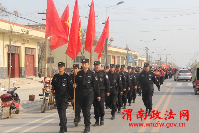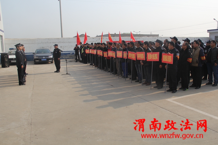 渭南政法网(特约通讯员 张剑)为进一步深化全县平安建设工作会议精神,确保辖区今冬明春社会治安大局稳定,富平县公安局美原派出所大胆创新,联合镇政府成立辖区“冬季严防巡逻队”。12月9日, 美原镇“冬季严防巡逻队”启动仪式暨平安创建推进大会在美原派出所院内隆重举行。富平县委常委政法委书记杜银虎、富平县公安局副局长刘建伟、镇政府相关领导、美原派出所全体民警、交警中队、巡警队、村组干部、巡逻队员200余人参加会议。