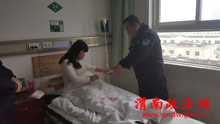 渭南政法网(特约通讯员 李诗龙 )2016年12月12日上午,高新交警大队负责人王晓文、副大队长刘全红、法制督察中队长石军、交通秩序管理中队长姬治国,前往渭南市人民医院看望慰问了因公负伤民警吴晓锐,并送上慰问金。